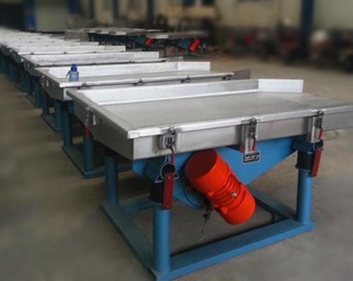 在啟動(dòng)振動(dòng)輸送機(jī)前,應(yīng)檢查周圍是否有妨礙篩機(jī)運(yùn)轉(zhuǎn)的障礙物,各處聯(lián)接螺栓是否緊固,尤其是振動(dòng)電機(jī)、支撐座、篩板的固定螺栓要重新緊固一遍。檢查兩臺(tái)振動(dòng)電機(jī)的轉(zhuǎn)向是否相反,如轉(zhuǎn)向相同,應(yīng)變更一臺(tái)電機(jī)的電源接線,使兩臺(tái)電機(jī)的轉(zhuǎn)向相反。連續(xù)運(yùn)轉(zhuǎn)4小時(shí)后,測(cè)量軸承溫度,軸承溫度不得超過(guò)75℃。振動(dòng)輸送機(jī)停車前,應(yīng)先停止給料,篩面物料走完后,再停車。停車后要及時(shí)清理篩面上的物料和雜物。振動(dòng)電機(jī)每使用2個(gè)月要加專用油一次。