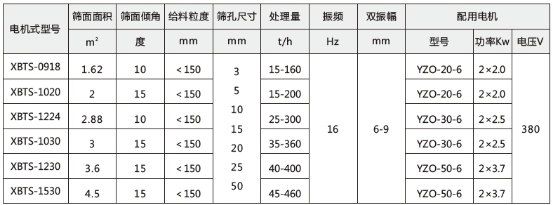 XBTS系列彈臂振動篩面傾斜安裝,角度在20°-35°之間,與其它同類型產(chǎn)品相比具有下列特點: